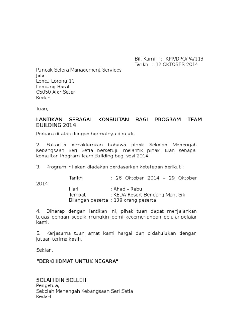Contoh Surat Pelantikan Jawatankuasa Sebut Harga Contoh Surat
